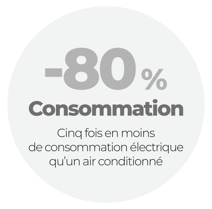 CONSOMME 80% DE MOINS QU’UN CLIMATISEUR