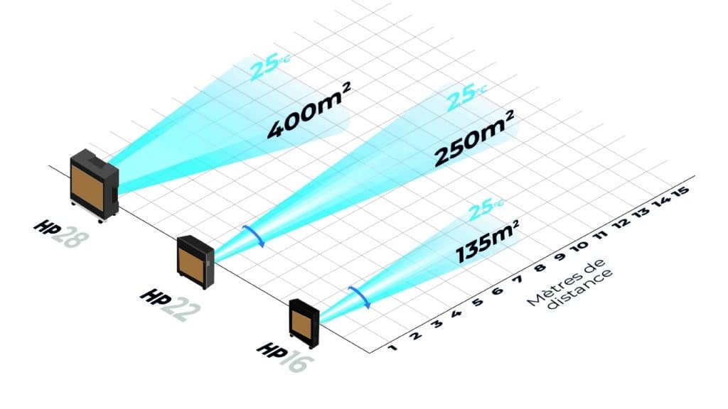 Entre 7ºC et 20ºC de moins que l’air extérieur. Cela dépendra des conditions météorologiques quotidiennes, principalement de la température de l’air extérieur et de l’humidité. Plus la journée est chaude et sèche, plus les refroidisseurs à évaporation refroidiront.